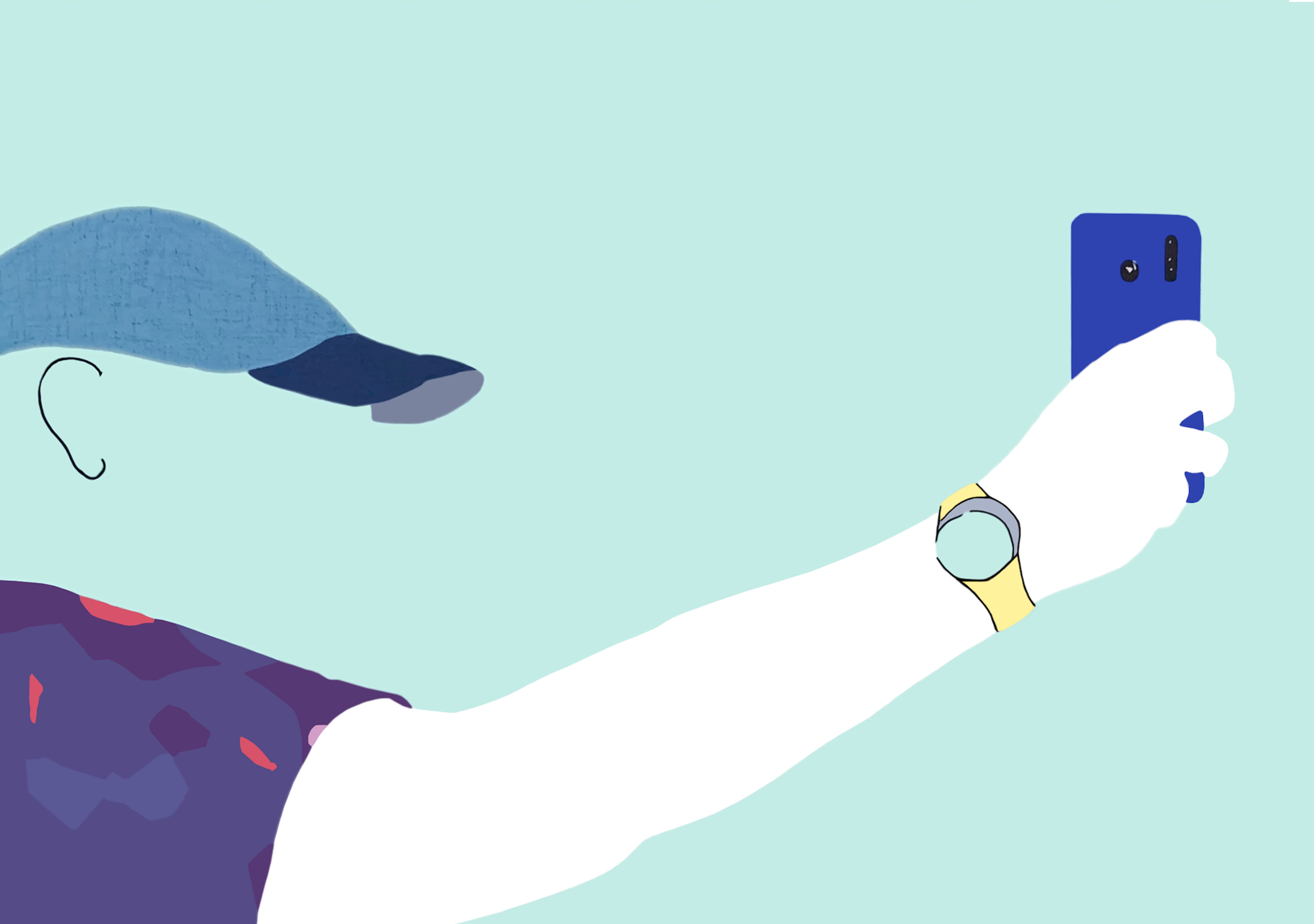 Inspired by the urban landscape, this work captures spontaneous street moments, focusing on human behaviour—especially our interactions with mobile phones across generations. Using photography as a starting point, the artist enhances reality with soft or vivid colours to create playful, imaginative scenes that invite reflection, curiosity, and a smile.